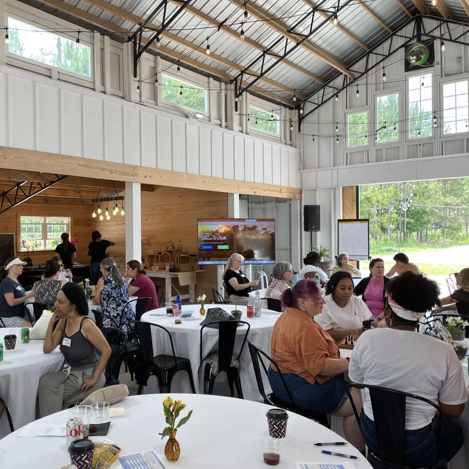 Whether your retreat is a blend of group gatherings, break out sessions, or mix-and-mingle time, we've got you covered. Even our beautiful white farmhouse tables and black vintage cafe chairs come with the venue!