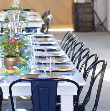 Even our beautiful white farmhouse tables and black vintage café chairs come with the venue!